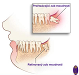 Zuby moudrosti (lidově „osmičky“) se zakládají v čelistech jako poslední zuby kolem 8. roku života a zpravidla prořezávají do dutiny ústní po 17. roce života. Proto velice často není místo pro jejich zařazení do správné polohy a zůstávají částečně nebo úplně skryté v kosti. Mohou být různě skloněné či zdeformované. Dále mohou nepříznivě působit i na sousední zuby či okolní měkké tkáně kolem čelistí a vyvolávat bolestivé záněty.