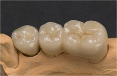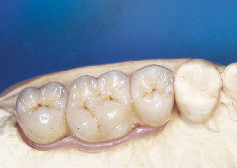 vrstvou estetické keramiky. Dostatečně estetický i funkční typ korunky